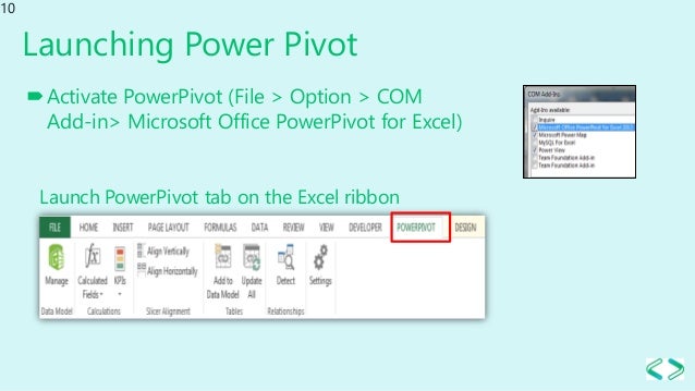 You can import data from one of the many data sources given in the table below. Jan 19 2021 5 Power Pivot is only available for specific license SKU for Excel 2013. In the Manage box click COM Add-ins Go.